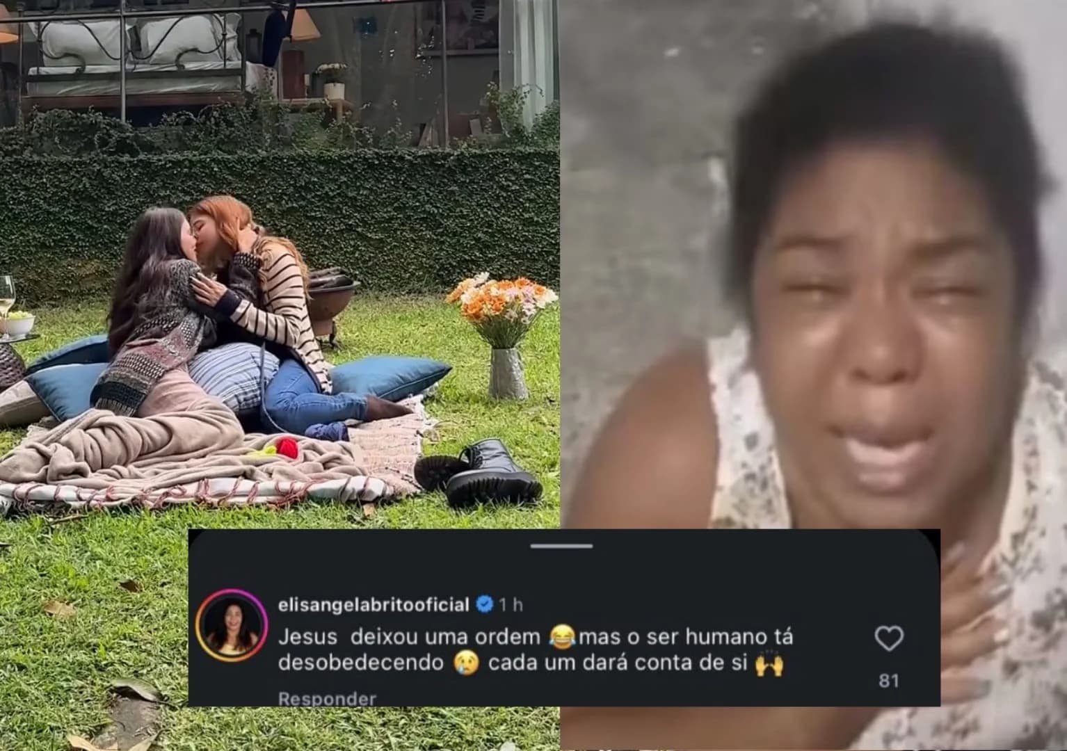 O post mostrava os bastidores de uma cena de beijo entre as personagens Lorena, interpretada por Alanis Guillen, e Juquinha, vivida por Gabriela Medvedovski. Ao comentar a publicação, Elisângela usou argumentos religiosos para criticar o relacionamento homoafetivo exibido na trama.
