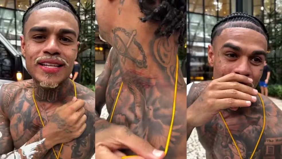 Durante a passagem pelo Centro Histórico, criminosos tentaram arrancar uma corrente de ouro do artista, avaliada em mais de R$ 100 mil. Na ação, MC Cabelinho sofreu um ferimento no pescoço e precisou deixar o local às pressas.